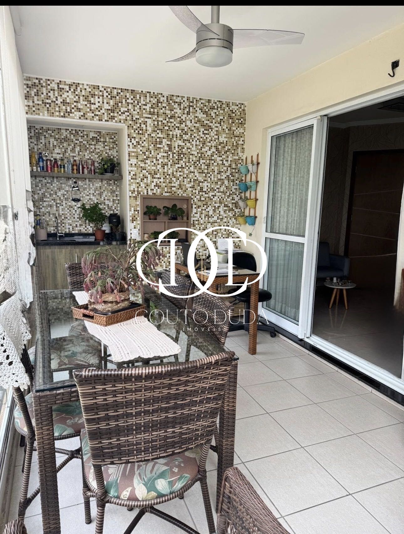 - Varanda gourmet com piso nivelado com o restante da casa, fechamento envidraçado e persianas