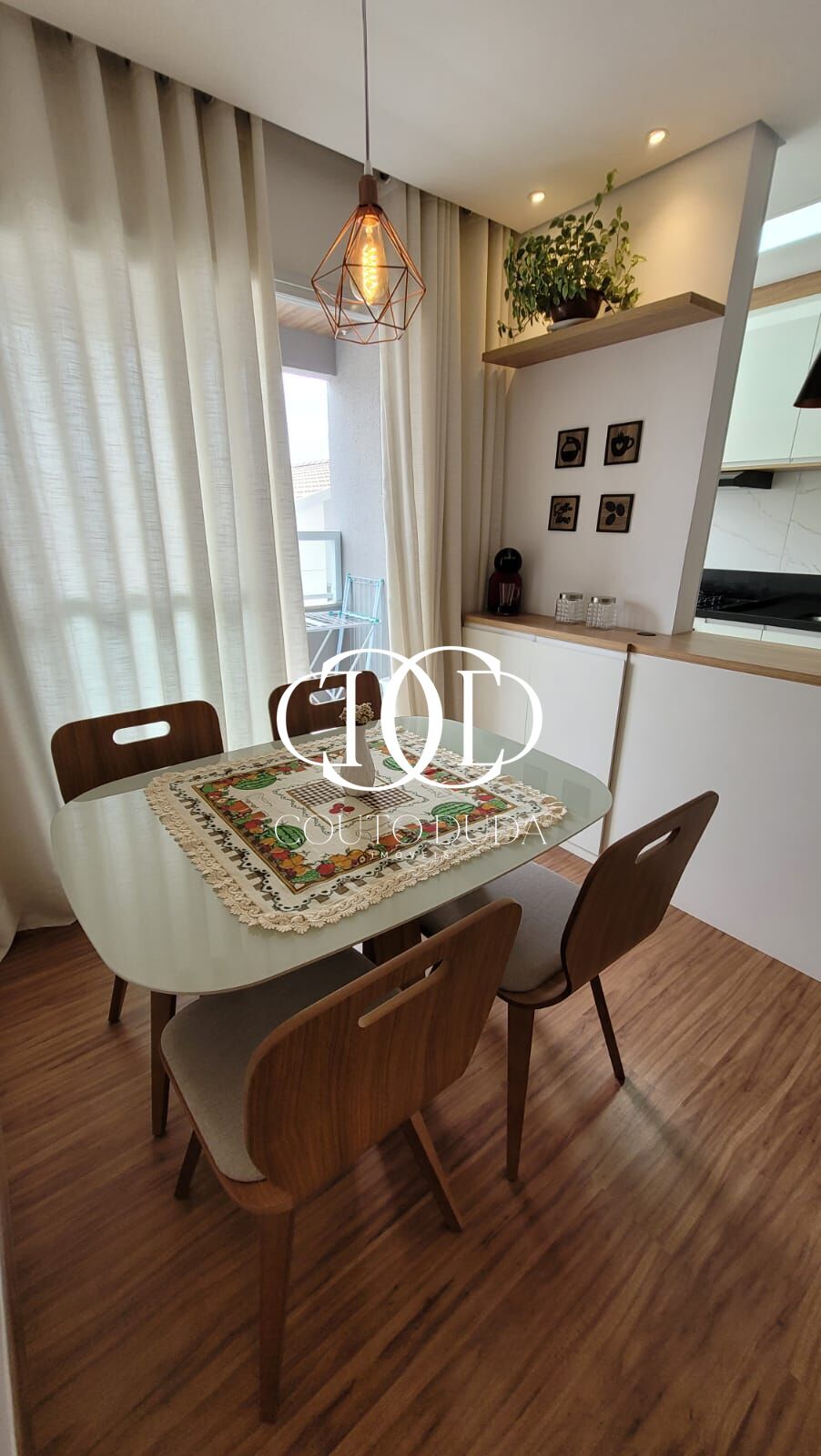 Apt mobiliado. Cozinha área de serviço, sala de estar e jantar