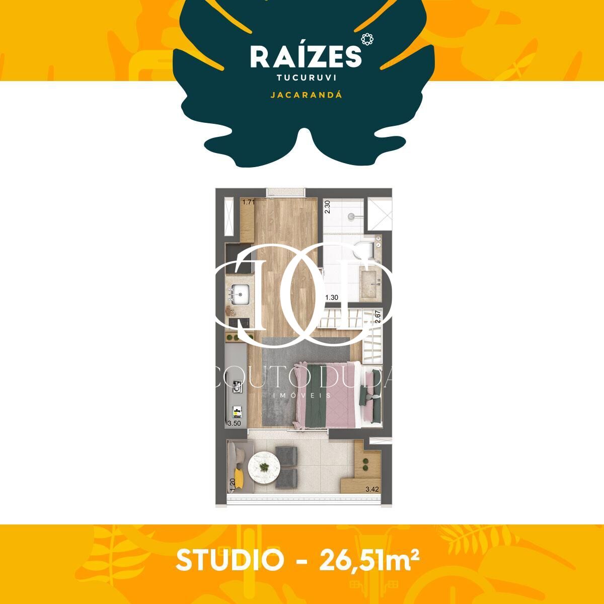 Studio com 27m².