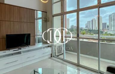 Apresentamos este sofisticado apartamento duplex totalmente mobiliado, ideal para quem busca exclusividade, conforto e praticidade em um só lugar. Com um dormitório cuidadosamente planejado, o imóvel oferece um ambiente moderno e acolhedor, perfeito para solteiros ou casais que valorizam um espaço funcional sem abrir mão do requinte. A integração entre a cozinha e a sala cria uma atmosfera contemporânea e fluida, enquanto o pé-direito elevado proporciona amplitude, elegância e excelente iluminação natural. A varanda complementa o ambiente com charme e privacidade, sendo um convite para momentos de relaxamento.
